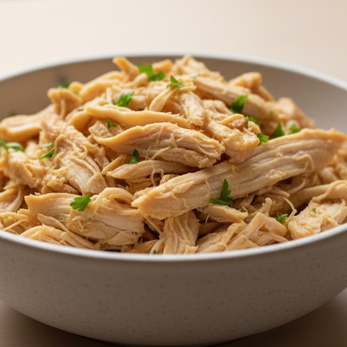 This recipe reflects how shredded chicken is actually made at home — lightly seasoned, gently cooked, and intentionally neutral so it adapts to many uses without overpowering other ingredients.