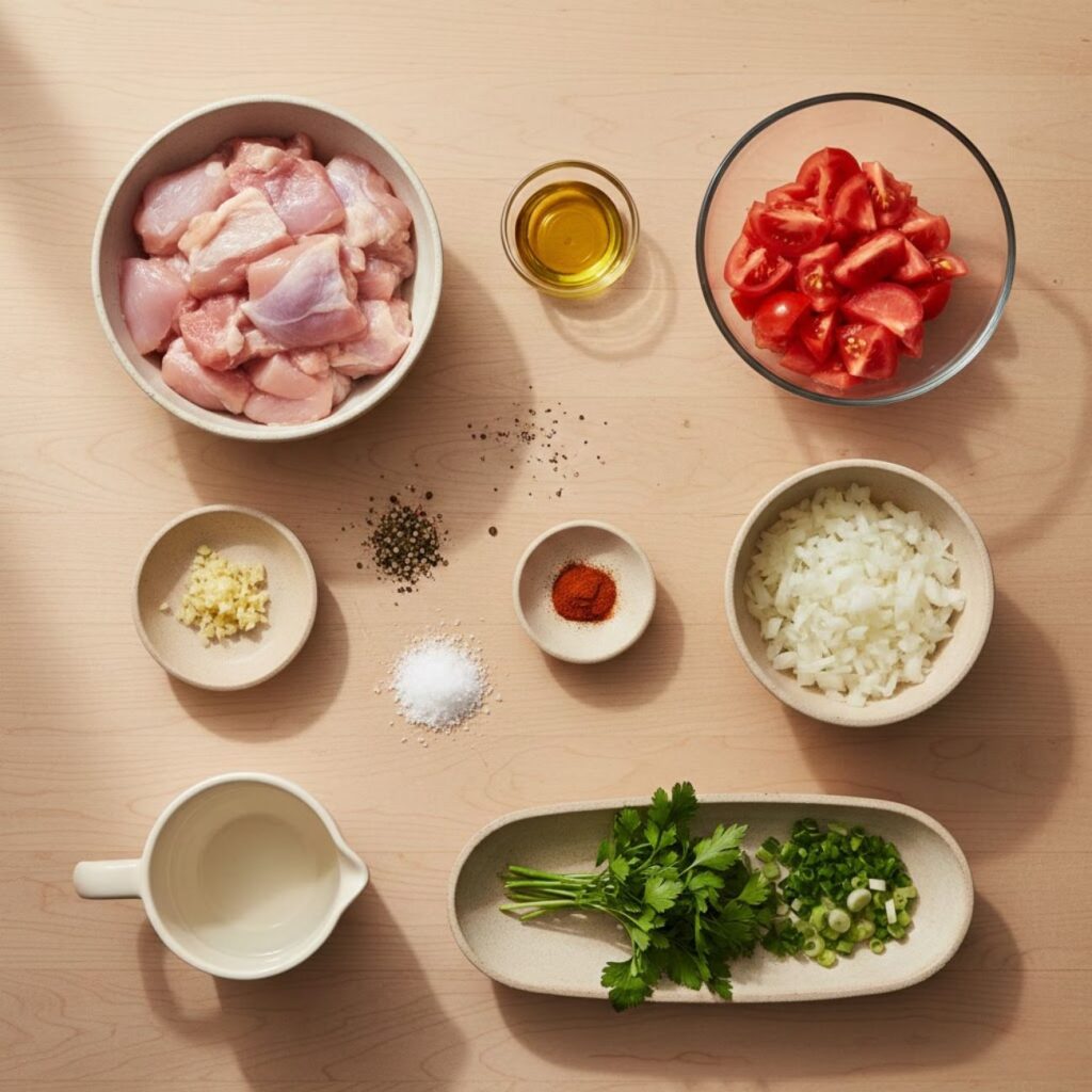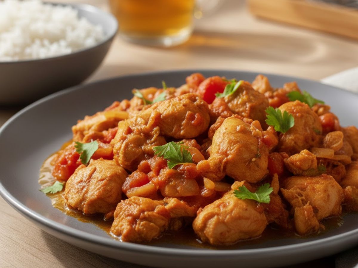 This recipe stays close to how it’s normally prepared: quick cooking, mild seasoning, and a clean tomato base that doesn’t overpower the chicken.